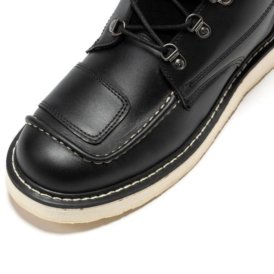 Fabricadas con cuero de alta calidad, resistente y transpirable, las botas Néstor ofrecen una comodidad excepcional desde el primer uso. Su cuña ligera y estable ayuda a absorber impactos y mejorar la postura al caminar, aportando una pisada más firme y segura. Cada detalle está pensado para transmitir robustez, suavidad y confort prolongado, incluso tras muchas horas de uso continuo.